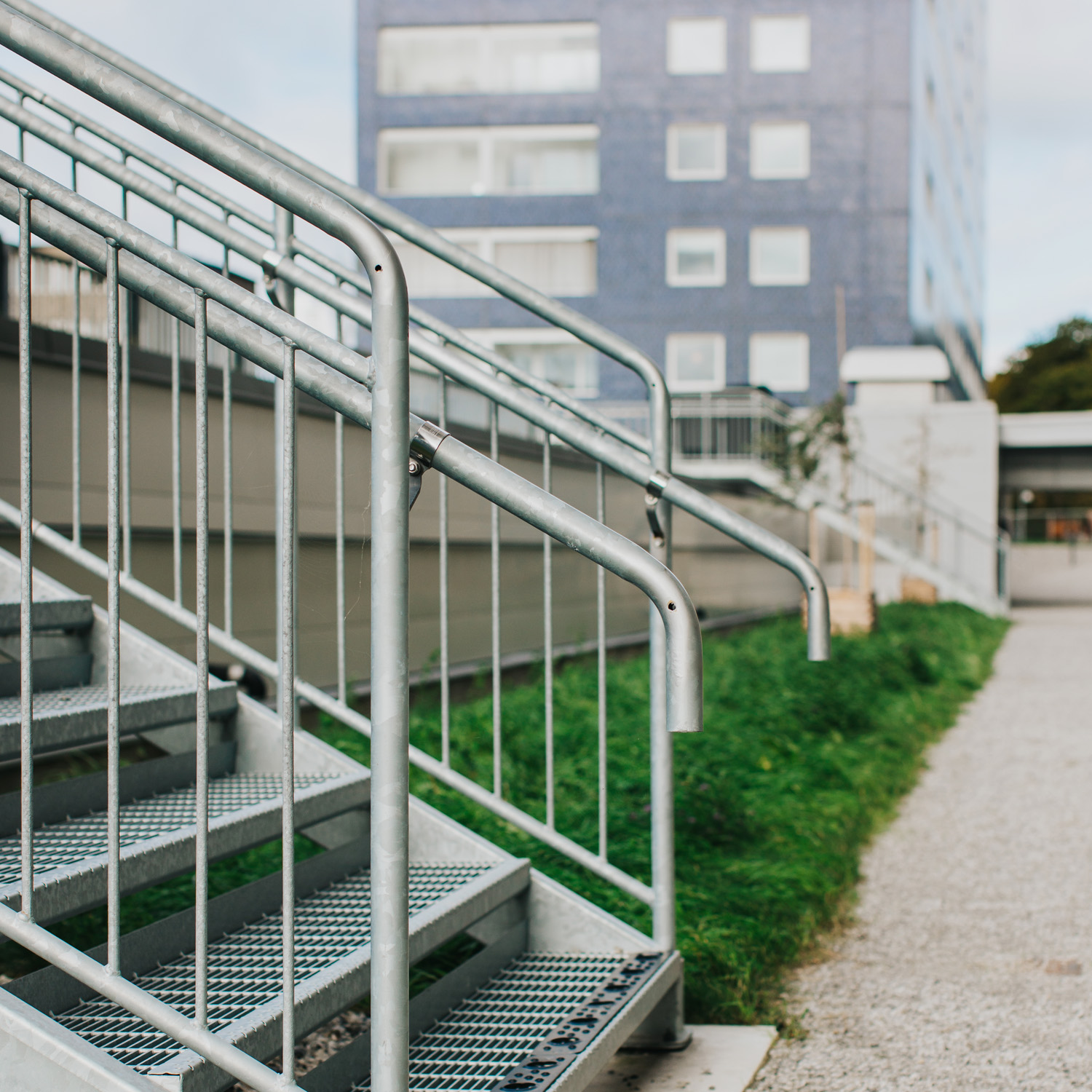 Luiskien lisäksi toimitettiin myös muita esteettömyyden kannalta tärkeitä osia. Asuinrakennusten sisäänkäynneistä alkavat pihalle johtavat käytävät, joissa on sisäänkäynnin jalkasäleiköt. Yhteensä 15 jalkasäleikköä ja kolme portaikkoa, kaikki Welandilta, yhdistävät pihan toimivaksi kokonaisuudeksi. Projektin aikana Patrik oli yhteydessä useisiin Welandin eri toimintoihin – suunnittelijoista ja rakentajista myyjiin – varmistaakseen, että ratkaisut sopivat projektin vaatimuksiin.
