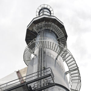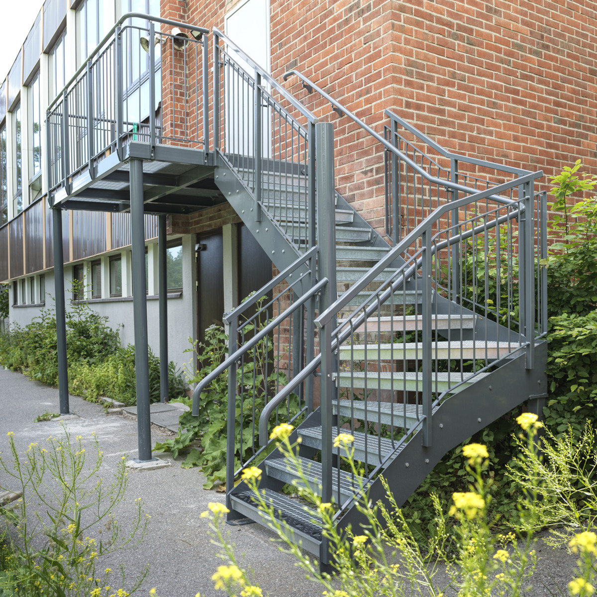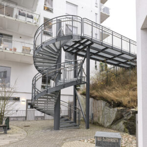 Valmistamme myös kierreportaita, joissa on esimerkiksi erittäin vahva keskiputki. Muita vaihtoehtoja ovat suuremmat säteet tai räätälöidyt kaiteet. Yhdistetään tietysti myös vakiovalikoimamme askelmiin ja kaiteisiin.