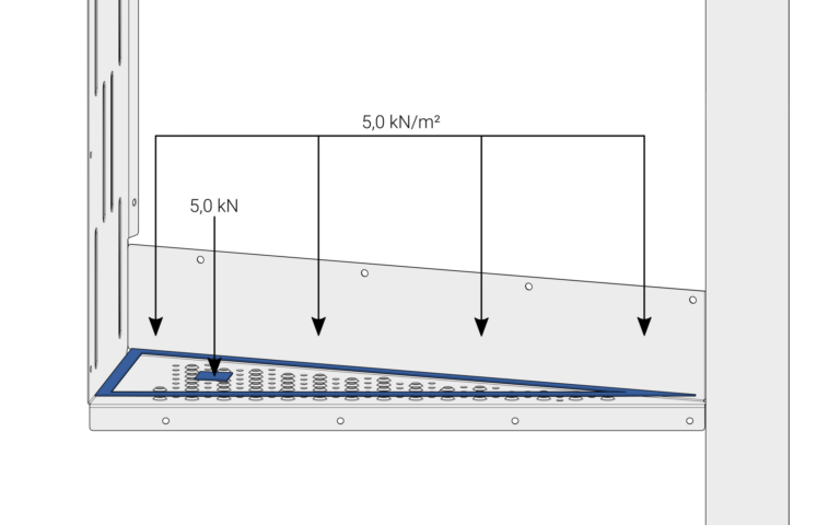 Askelmat on mitoitettu 5,0 kN/m² tasaiselle kuormalle tai 5,0 kN pistekuormalle.