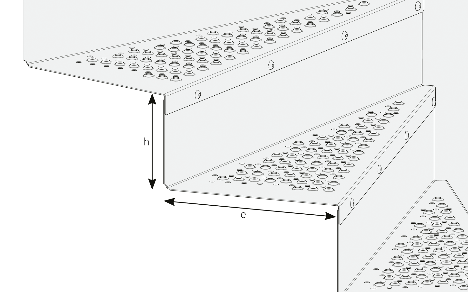 Askelma valmistetaan kuumasinkitystä reikälevystä. Reikäkoko ø 10 mm, kolmijako 30 mm. Puolessa rei`istä on korotetut reunat, minkä ansiosta niiden pito-ominaisuudet ovat parhaat mahdolliset.